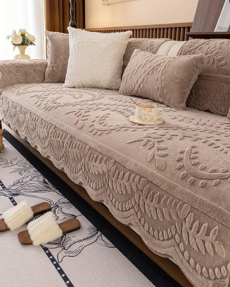 - نمط زخرفي منسوج: يتميز بنمط بارز جميل مع أوراق معقدة وتصميمات نباتية تضيف عمقًا بصريًا ورقيًا إلى ديكور منزلك