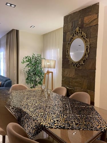 Generic - جيني مفرش طاولة مربع مخملي، نمط اسود وذهبي، 140 سم × 140 سم، .فلو