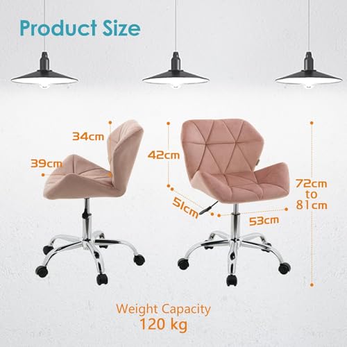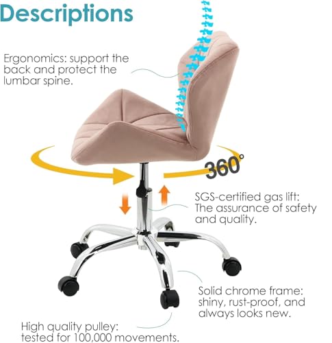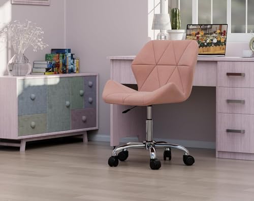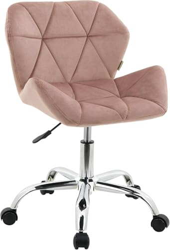 Generic - جيني كرسي مكتب دوار مخملي مع قاعدة من الكروم (بينك)، زهري، معدن