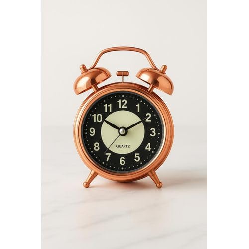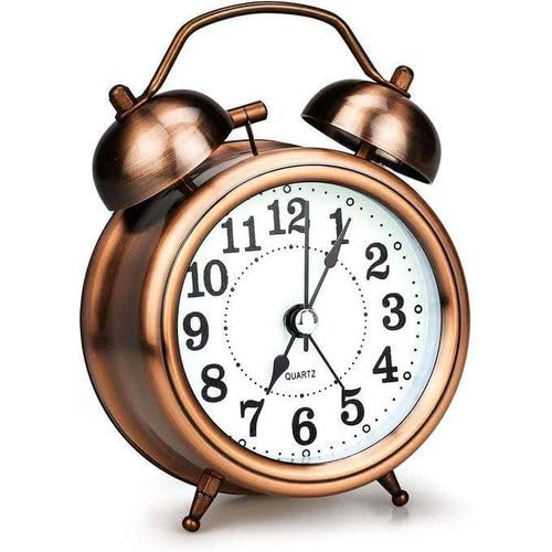 - تصميم كلاسيكي: ساعة منبه معدنية نحاسية على الطراز العتيق مع أجراس مزدوجة، تتميز بجمالية مستوحاة من الطراز العتيق مثالية لوضعها بجانب السرير أو المكتب.