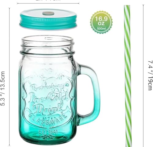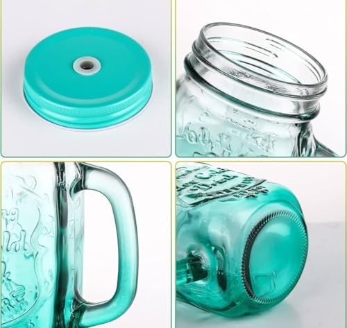 Generic - برطمان ماسون زجاجي عتيق بمقبض وغطاء تركواز وفتحة واسعة، FI