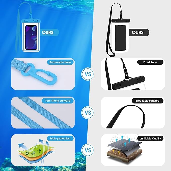 - ✅ (مقاوم للماء) يحافظ على هاتفك جافًا وآمنًا أثناء ممارسة الرياضات المائية أو التصوير تحت الماء في البحر وحمامات السباحة.