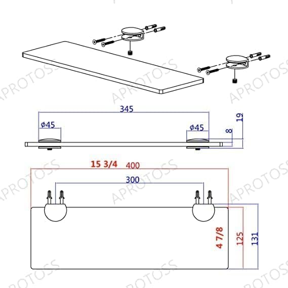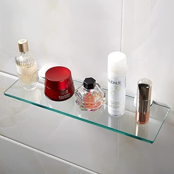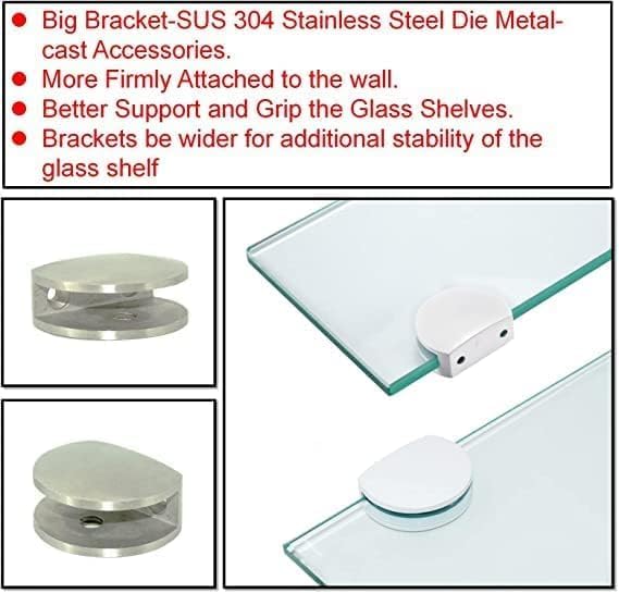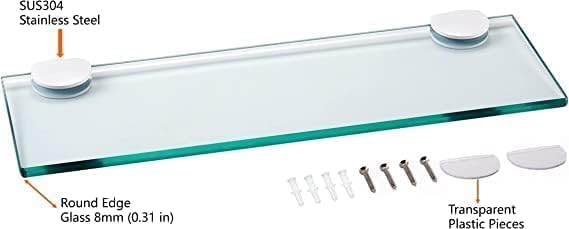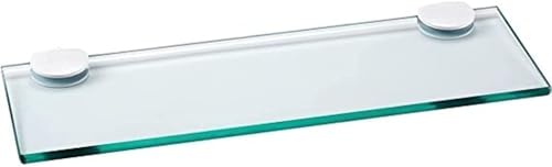 Generic - رف زجاجي للحمام مع دعامات شديدة التحمل بلون ابيض رفوف زجاجية عائمة من الستانلس ستيل - ملحقات مصبوبة حمام شفاف مثبت على الحائط 35 سم