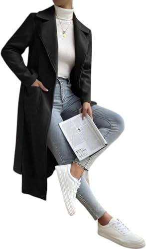 Generic - جيني معطف واق من المطر للنساء 2025 من الصوف الرمادي مع حزام