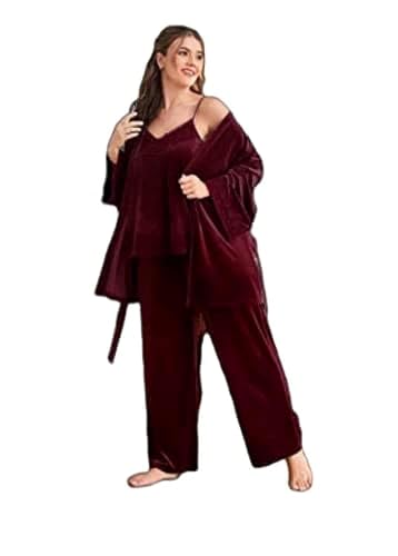Generic - جيني بنطلون بيجامة للنساء، مقاس كبير، ارجواني، اخضر داكن، بورغندي، خمري، هايدي قطيفة، شتاء، مقاس مريح، مناسب للعطلات، يمكن غسله في الغسالة، 3 قطع (L)
