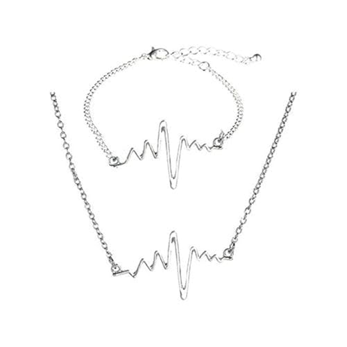 Generic - طقم سلسلة و انسيال نبضه فضى، معدن، متعدد الالوان، للنساء