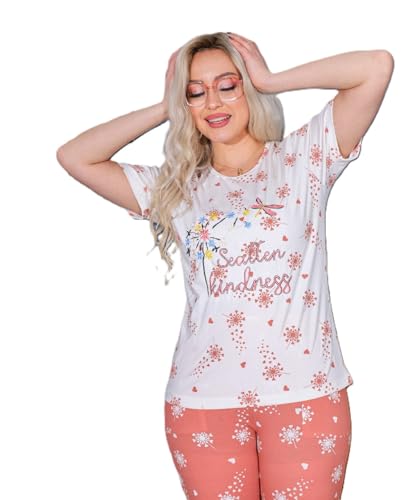 Generic - بيجامة صيفية مصنوعة من القطن الناعم ومريحة للغاية للنساء والفتيات مكونة من قطعتين بنطلون وتيشرت كاروهات مطرز