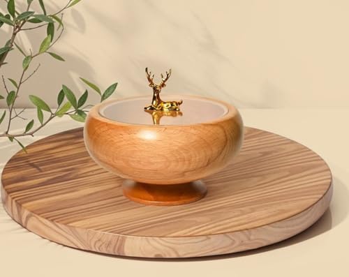 Generic - جيني بونبونير خشبي مع غطاء غزال ذهبي، وعاء تخزين من الخشب الطبيعي مع غطاء اكريليك مقاوم للكسر، .ايه ار