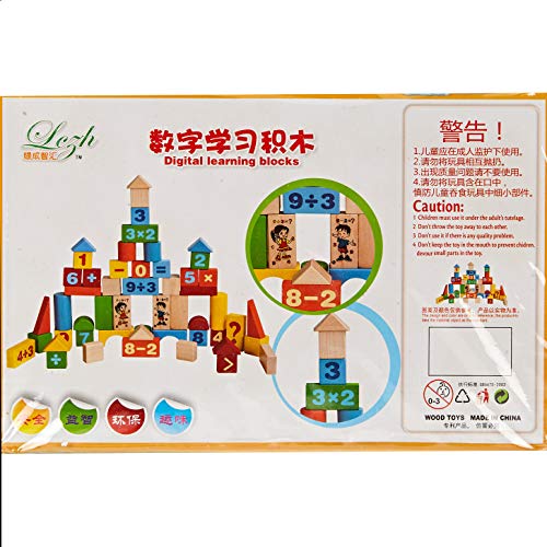 Generic - جيني مكعبات خشبية رقمية مع شنطة بلاستيكية - مجموعة بناء - مكعبات بناء - للجنسين - 3 سنوات فما فوق