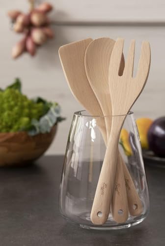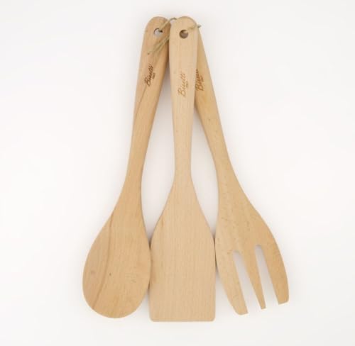 Generic - جيني مجموعة ادوات مطبخ خشبية، 3 قطع ملاعق تقديم من خشب الزان، طبيعي .ايه ار