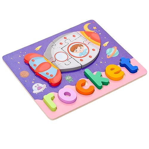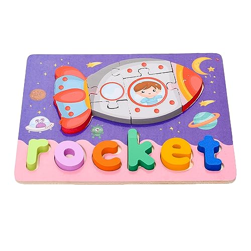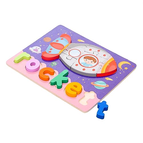 Generic - بازل خشبي مربع ثلاثي الأبعاد من جينيرك، بتصميم صاروخ وكلمة لتنمية مهارات الأطفال، مجموعة من 12 قطعة مقاس 20×15 سم - متعدد الألوان