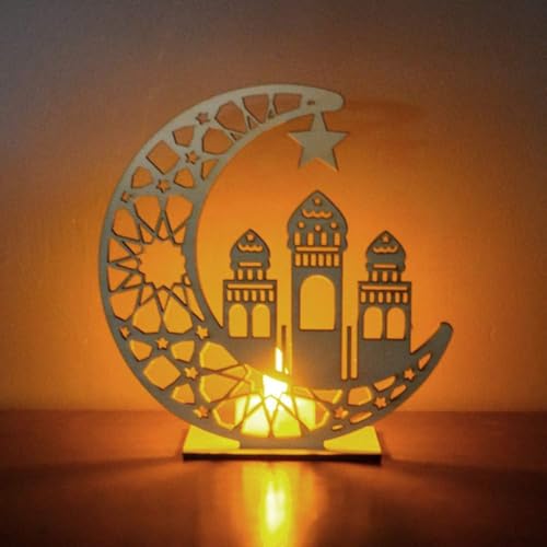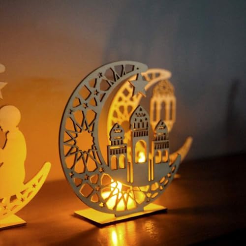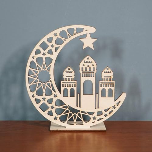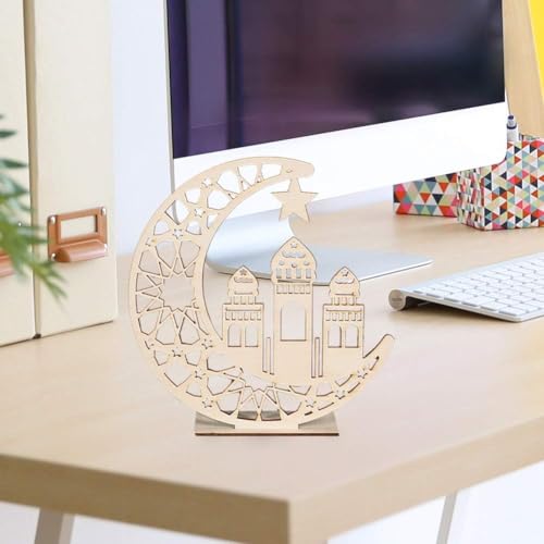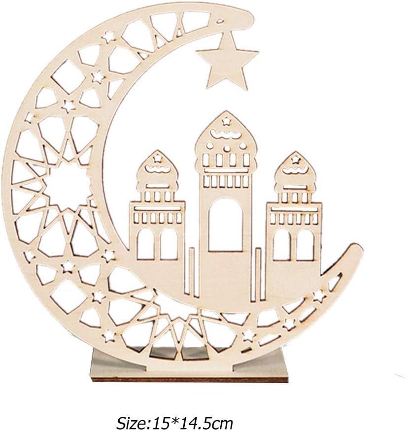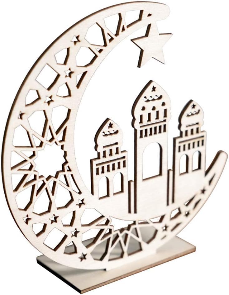 - مزايا التصميم: تصميم هلال خشبي جميل وقمر ومسجد مع أنماط هندسية معقدة وتفاصيل نجوم، مثالية لديكورات الاحتفالات الإسلامية