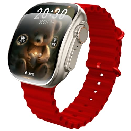 Generic - ساعة ذكية X10 الترا 3 بشاشة منحنية، تقنية الاتصال قريب المدى والبلوتوث واللشحن اللاسلكي (لون أحمر)
