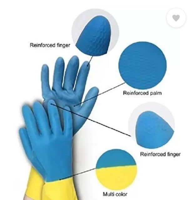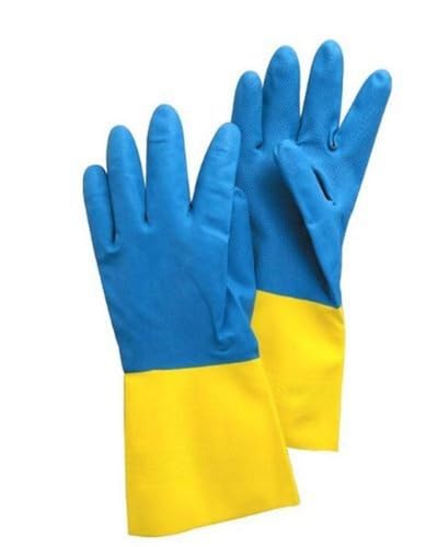Generic - قفازات تنظيف مطاطية قابلة لإعادة الاستخدام من مادة عالية الجودة مضادة للبكتيريا - (أصفر × أزرق) - XXL
