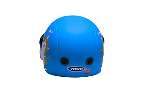 Generic - خوذة موتوسيكل للاطفال من ياوا خفيفة الوزن وجيدة التهوية وقابلة للتعديل - ازرق فاتح مطفي - نمط قط