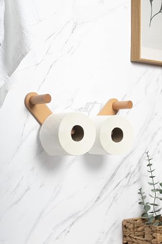 NOBOHR - مجموعة تخزين ورق التواليت من قطعتين | حامل ورق التواليت بدون ثقب | تخزين ورق التواليت الخشبي | حامل ورق المرحاض | تخزين ورق التواليت المستدام