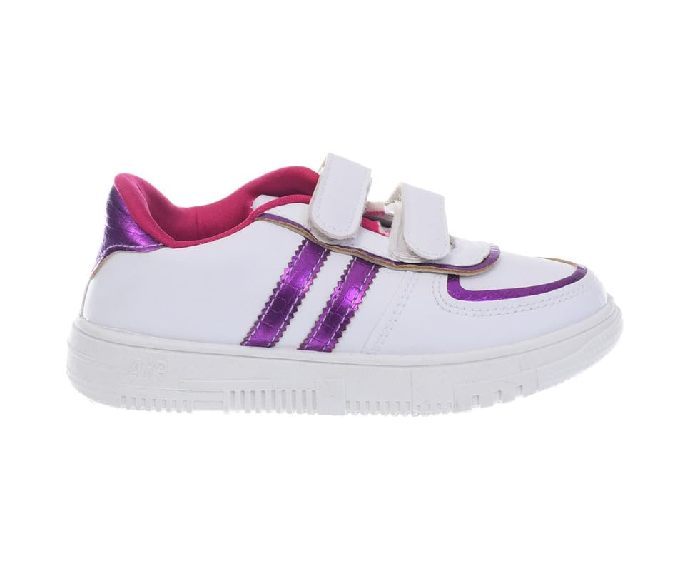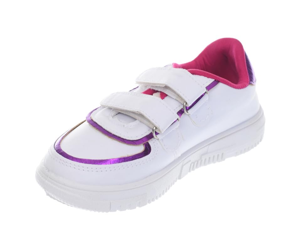 Genuine - حذاء رياضي جلد للمشي والأنشطة الخارجية للبنات الصغيرات من جينيون - أبيض/أرجواني، مقاس 29 EU