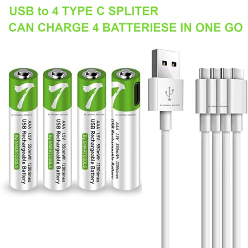 OSELTECH - بطاريات ايه ايه ايه قابلة لإعادة الشحن 1.5 فولت 750 مللي وات في الساعة، بطارية ليثيوم ايون مع كيبل شحن USB نوع C، شحن سريع عالي السعة، مخرج مستمر 1200 دورة، حماية من الشحن الزائد (4)