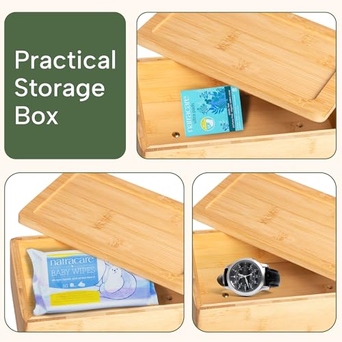- ✅ حامل ورق تواليت من البامبو الصديق للبيئة: مصنوع من البامبو المستدام، حامل ورق المرحاض الخاص بنا ليس أنيقًا فحسب، بل أيضًا صديق للبيئة، مما يضيف لمسة من الطبيعة إلى حمامك. اختر حلًا مستدامًا مع الارتقاء بديكور حمامك.