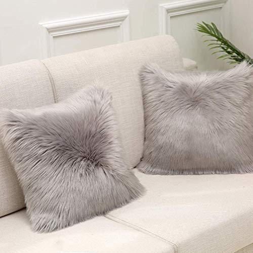 Genrics - اغطية مخدات زينة من الفرو الصناعي الفاخر للديكور المنزلي 50×50 سم، اغطية مخدات مربعة ناعمة منفوشة من الفرو الصناعي من القطيفة لغرفة المعيشة والكنبة وغرفة النوم 20×20 بوصة، طقم من قطعتين