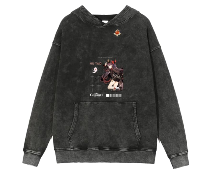 Generic - سترة بقلنسوة جينشين تارتاجليا شياو زولينج انيمي جيم رمادي باهت اسيد 18
