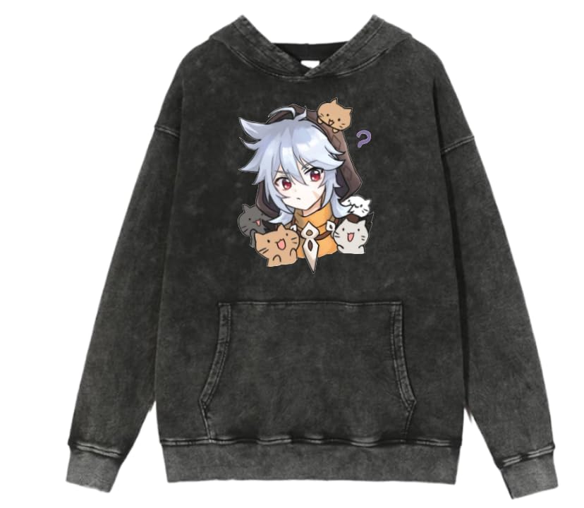 Generic - Genshin tartaglia xiao zholing anime game gray washed acid hoodie 24