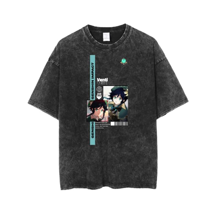 Generic - تي شيرت جينشين تارتاجليا شياو زولينج انيمي جيم رمادي باهت اسيد 12