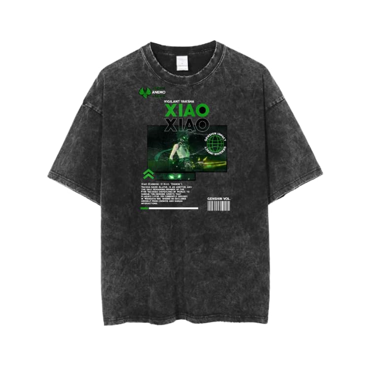 Generic - genshin tartaglia xiao zholing anime game gray washed acid T-SHIRT 17