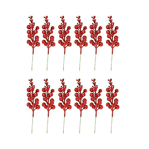 Generic - جذوع توت لامعة من جنتليكارين مقاس 7.87 بوصة اعواد صناعية لزينة الكريسماس غصون اشجار كريسماس لصنع اكليل وزينة شجرة والحرف اليدوية وديكور المنزل 12 قطعة أحمر