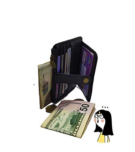 Other - محفظة جيب امامية بمشبك نقود من الجلد الاصلي مع مشبك لحافظة بطاقة الهوية، سوداء، للجنسين