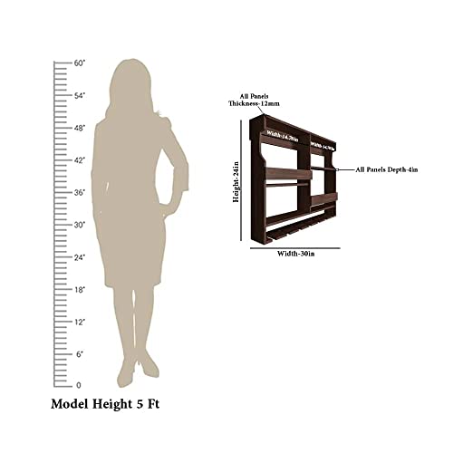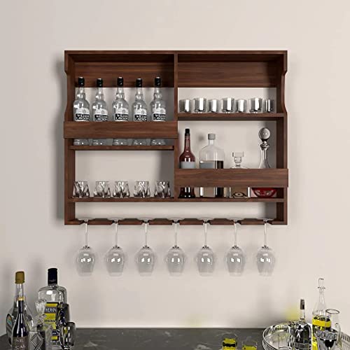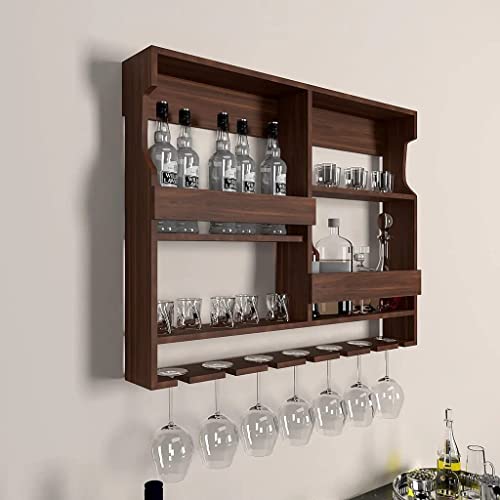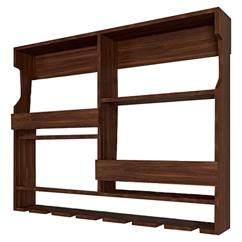 Genuine Decor - حامل أكواب خشبي صغير يثبت على الحائط كديكور ودولاب مشروبات مع مساحة إضافية من خشب الماهوجني برفوف معلقة من جينيون ديكور