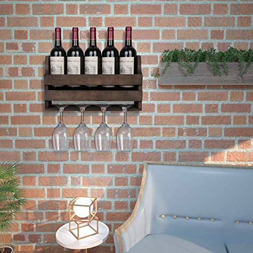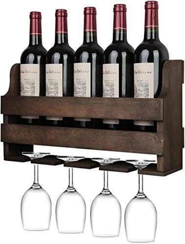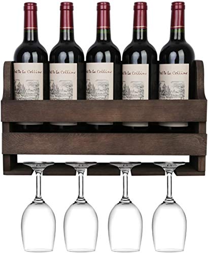 - ✅التخزين والعرض - يحمل رف النبيذ الجداري هذا ما يصل إلى خمس زجاجات قياسية من النبيذ وأربعة أكواب نبيذ، مما يمنحك حلاً صغيرًا للتخزين والعرض لمشروباتك المفضلة وأدوات الشرب المصاحبة