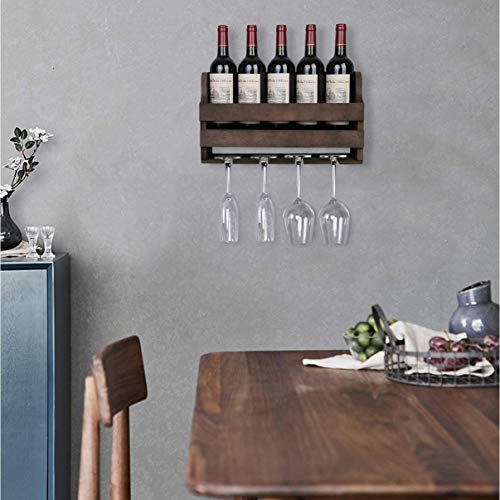 Genuine Decor - رف مشروبات يثبت على الحائط وحامل زجاج، رف عرض خشبي ريفي، للمطبخ وغرفة الطعام والبار والمنزل والمطبخ (خشب الساج)