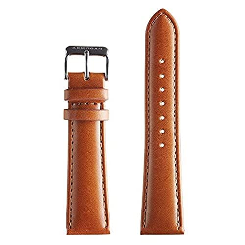 Smart Stuff - سوار جلد طبيعي مصنوع يدويا مع ابزيم اسود لساعة هونر ماجيك 2 الذكية ايليت - بني فاتح، للجنسين