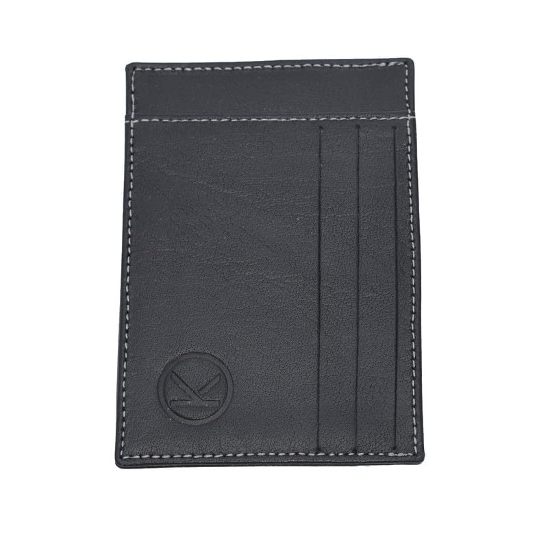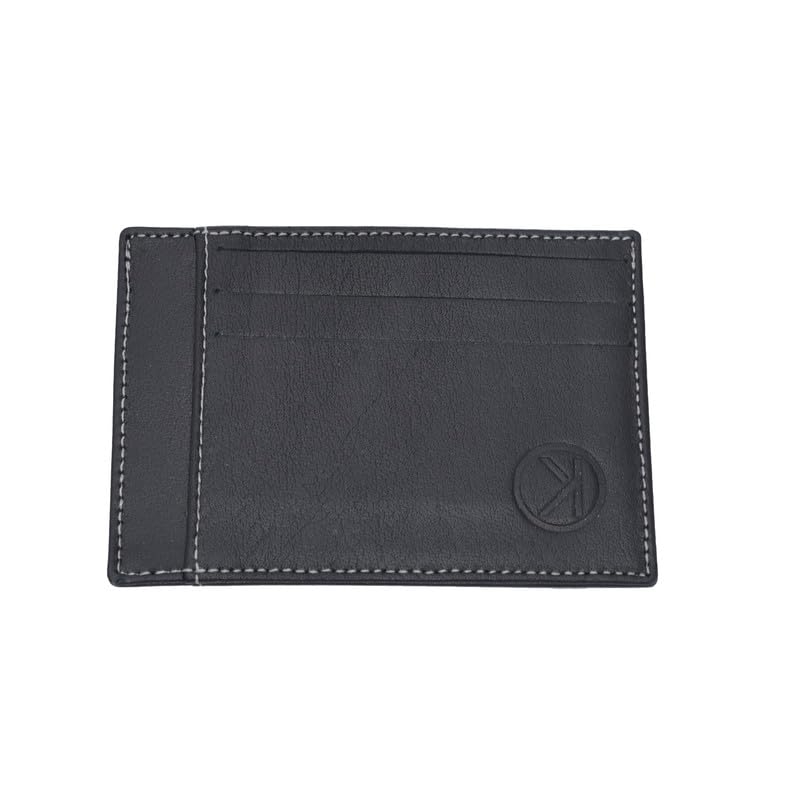 genuine - جينوين حافظة بطاقات جلدية وحامل للرجال رفيع فاخر، اسود