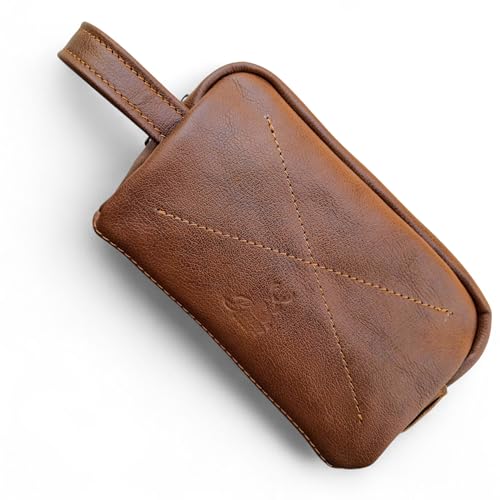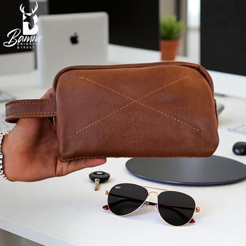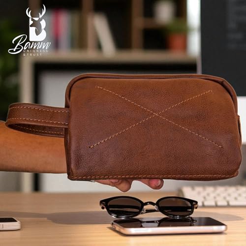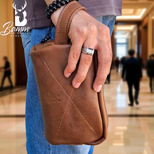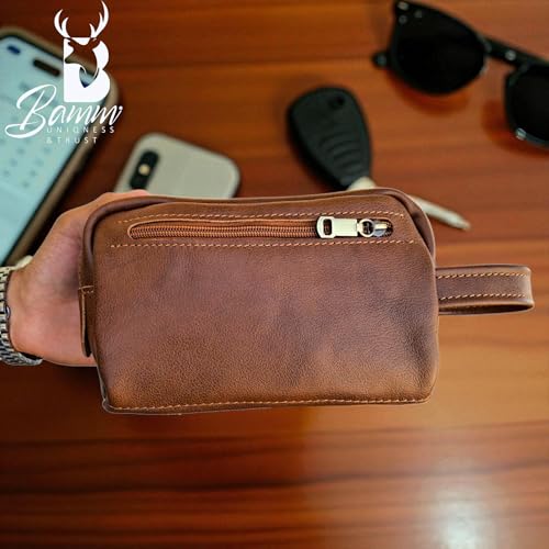 Bamm - شنطة يد جلد طبيعي للرجال بمقبض- حقيبة كاجوال صغيرة مع سوستة رئيسية وجيب خلفي لمستلزماتك اليومية مثل الهاتف والمفاتيح وغيرها