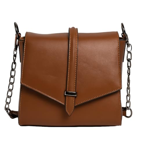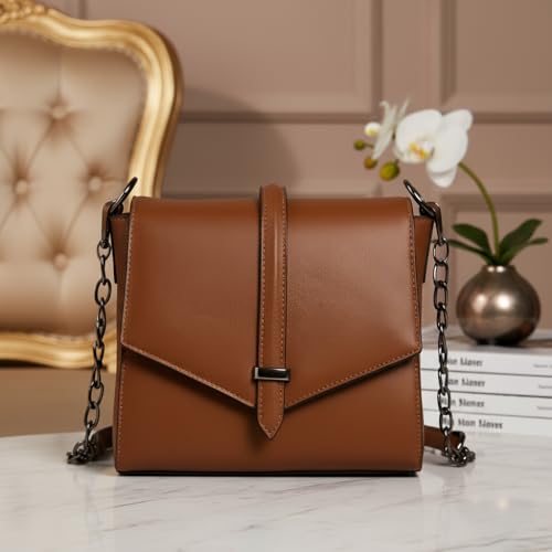 Generic - شنطة كتف جلد طبيعي نسائية – شنطة كروس كلاسيك مودرن بغطاء أمامي (Flap) مع سلسلة معدنية سوداء أنيقة – شنطة يد مناسبة للكاجوال والخروجات الرسمية"