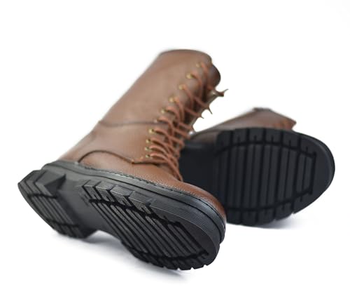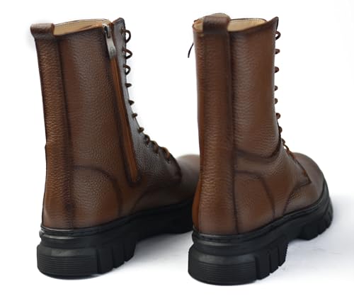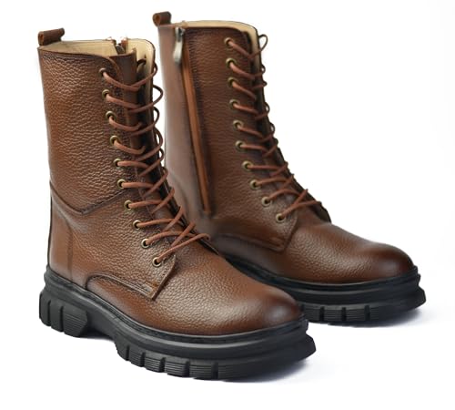 Generic - حذاء بوط مصنوع من الجلد الطبيعي بسوسته جانبيه ورباط ونعل مرتفع