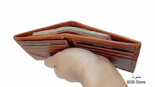 Generic - محفظة جلد طبيعي للرجال 12 فتحة للكروت والأموال وكراتة خارجية للجيب (جملي)
