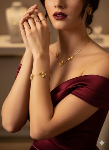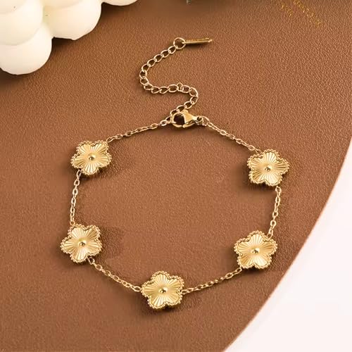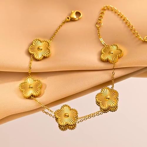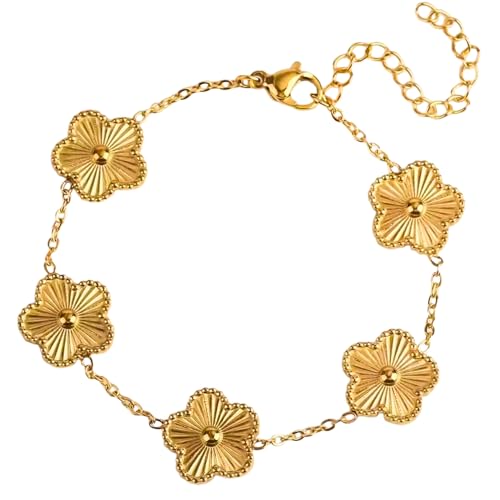 Generic - بريسلت حريمي ستانلس ستيل أصلية مقاومة للصدأ – اكسسورات ذهبية بتصميم وردة مضلعة لامعة – ثابتة اللون لا يتغير ومثالية للهدايا