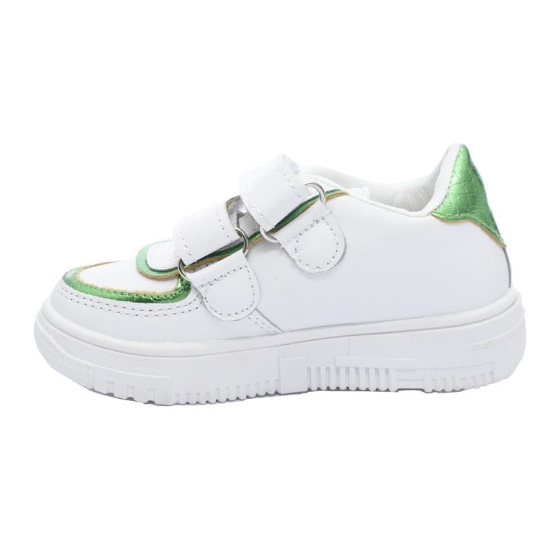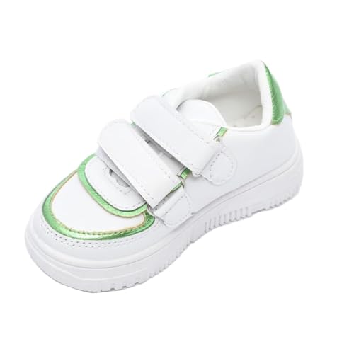 genuine - جينوين حذاء مخطط لامع للاطفال من الجنسين، لون ابيض واخضر، مقاس 22 EU