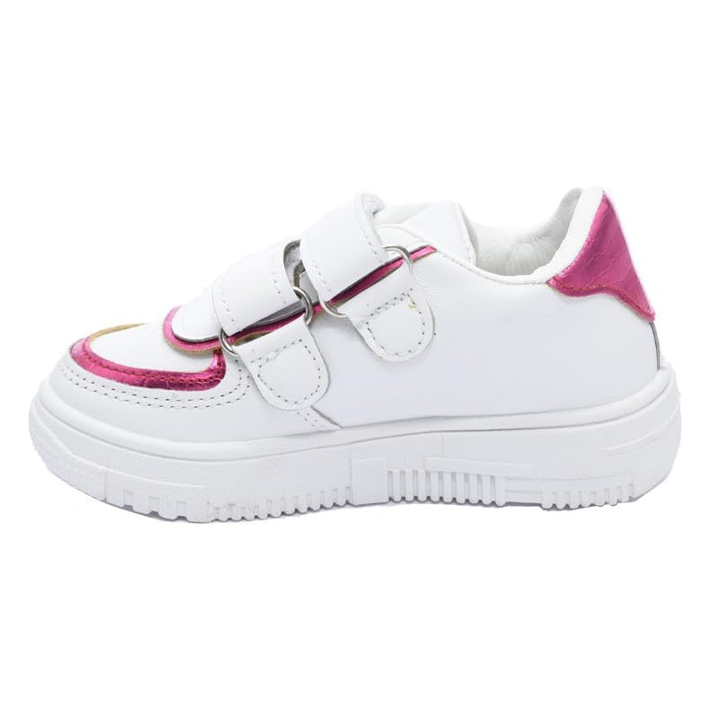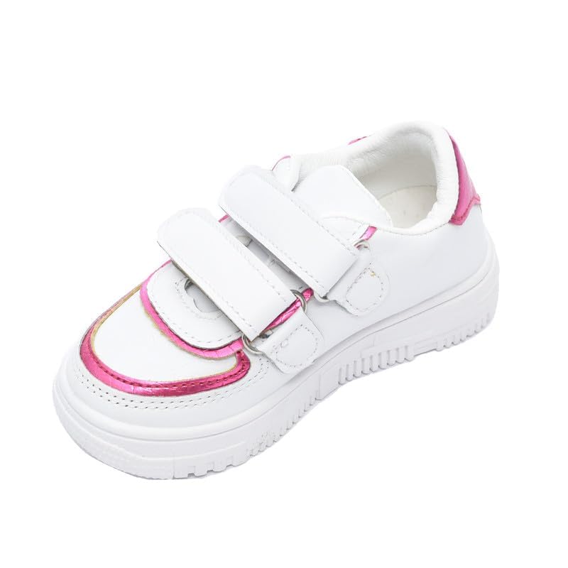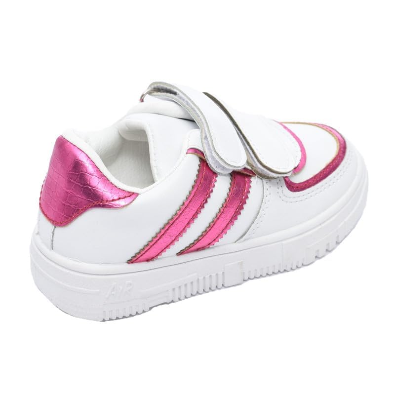 genuine - حذاء مخطط لامع للأطفال من الجنسين من جينوين، مقاس 25 عريض، لون أبيض ووردي
