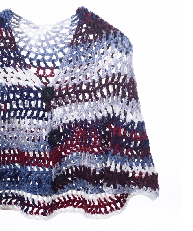 genuine - شال كروشيه مصنوع يدويا مع 3 أزرار للنساء من جينوين، متعدد الألوان، مقاس واحد
