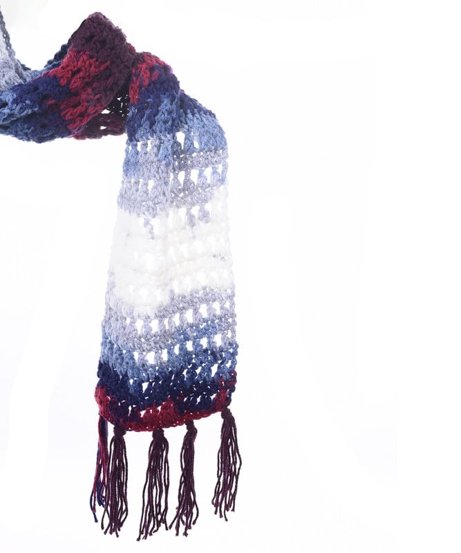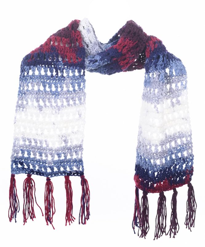 genuine - سكارف كروشيه طويل للنساء مصنوع يدويا من جينوين - أبيض، مقاس واحد