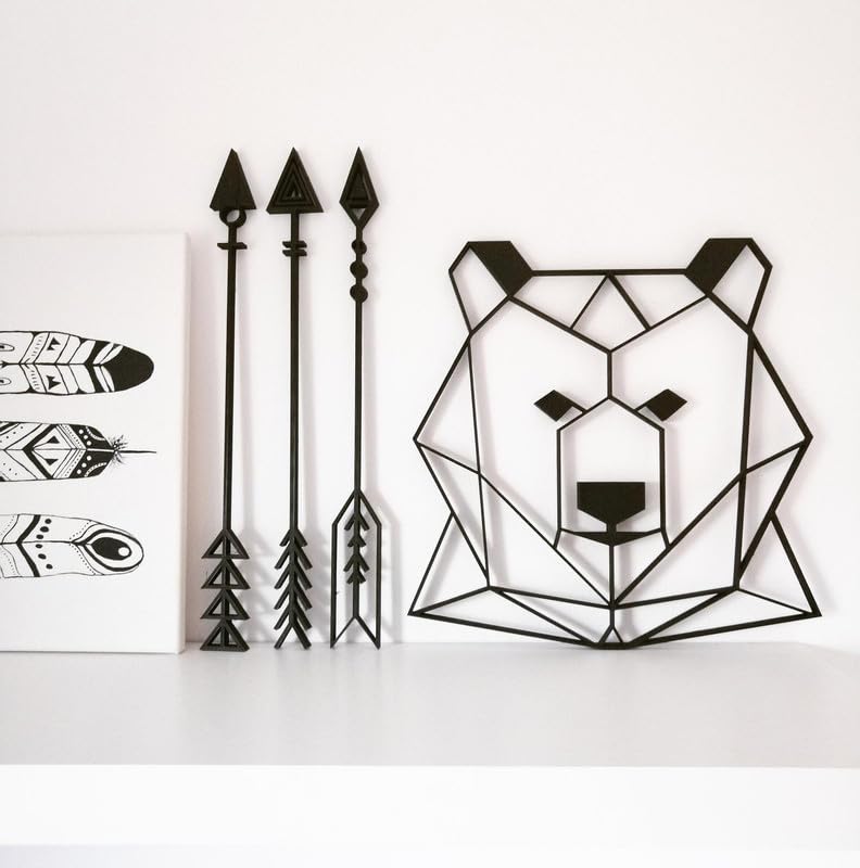 Generic - لوحة فنية جدارية بتصميم هندسي على شكل رأس دب مقاس 40 × 40 سم بلون اسود WQ.WA104.07