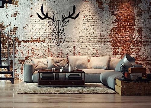 Generic - لوحة فنية جدارية بتصميم راس غزال هندسي مقاس 110×97 سم لون اسود WQ.WA162.01