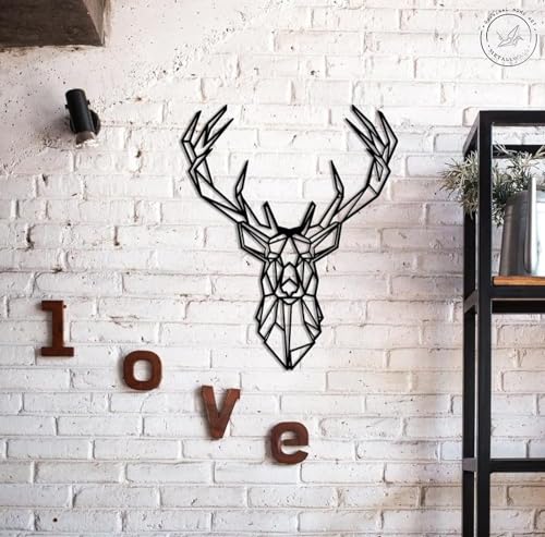 Generic - لوحة فنية جدارية بتصميم راس غزال هندسي، مقاس 70×57 سم، لون اسود، WQ.WA153.16