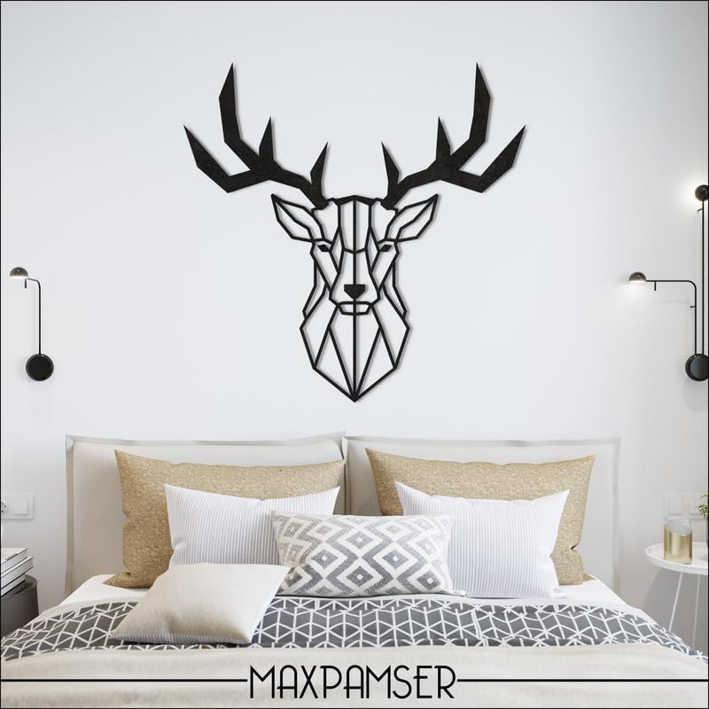 Generic - لوحة فنية جدارية بتصميم راس غزال هندسي، مقاس 70×70 سم، لون اسود، WQ.WA96.04