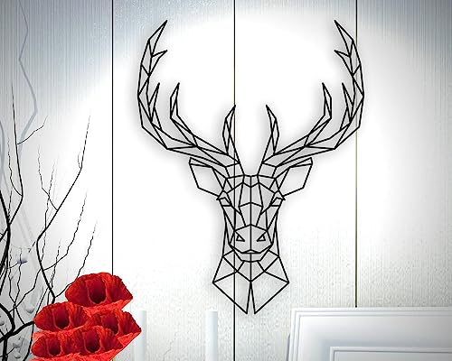 Generic - لوحة فنية جدارية بتصميم رأس غزال هندسي مقاس 80 × 53 سم لون أسود موديل WQ.WA97.16