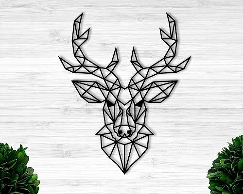 Generic - لوحة فنية جدارية بتصميم هندسي على شكل جمجمة غزال مقاس 100×100 سم لون اسود WQ.WA109.01